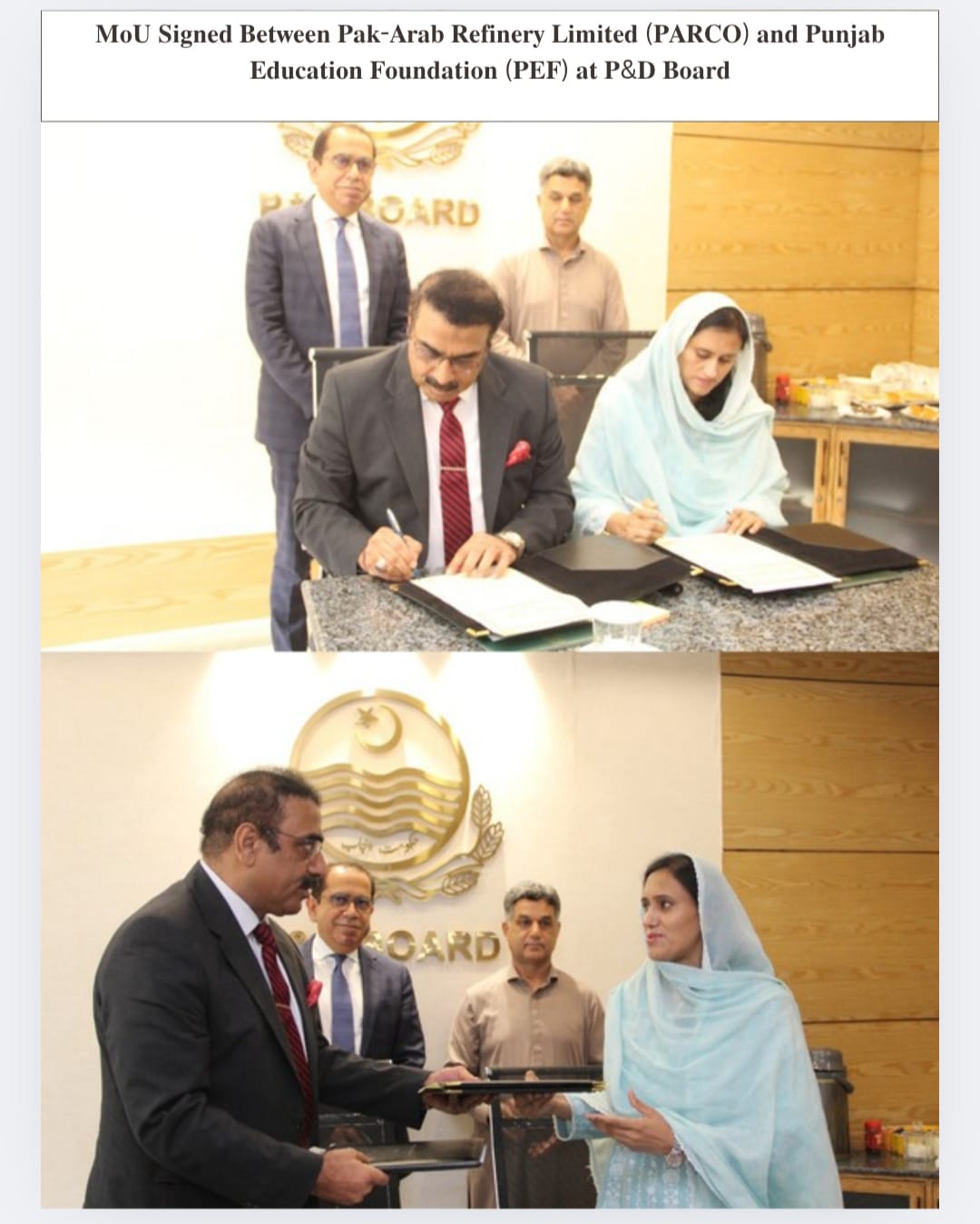 Under the auspices of the ๐๐ฅ๐๐ง๐ง๐ข๐ง๐ & ๐๐๐ฏ๐๐ฅ๐จ๐ฉ๐ฆ๐๐ง๐ญ ๐๐จ๐๐ซ๐, a ๐๐๐ฆ๐จ๐ซ๐๐ง๐๐ฎ๐ฆ ๐จ๐ ๐๐ง๐๐๐ซ๐ฌ๐ญ๐๐ง๐๐ข๐ง๐ (๐๐จ๐) was signed between ๐๐๐ค-๐๐ซ๐๐ ๐๐๐๐ข๐ง๐๐ซ๐ฒ ๐๐ข๐ฆ๐ข๐ญ๐๐ (๐๐๐๐๐) and the ๐๐ฎ๐ง๐ฃ๐๐ ๐๐๐ฎ๐๐๐ญ๐ข๐จ๐ง ๐ ๐จ๐ฎ๐ง๐๐๐ญ๐ข๐จ๐ง (๐๐๐ ) to enhance educational support in the Kot Addu district. The main purpose of the MoU is to address missing facilities in primary schools, provide teacher training, and offer scholarships for deserving students, thereby strengthening the education sector in underprivileged areas. The ceremony was witnessed by ๐๐ก๐ข๐๐ ๐๐๐จ๐ง๐จ๐ฆ๐ข๐ฌ๐ญ ๐&๐ ๐๐จ๐๐ซ๐, ๐๐ซ. ๐๐๐ฌ๐จ๐จ๐ ๐๐ง๐ฐ๐๐ซ, and ๐๐๐ง๐๐ ๐ข๐ง๐ ๐๐ข๐ซ๐๐๐ญ๐จ๐ซ ๐๐๐๐๐, ๐๐ซ. ๐๐ซ๐ญ๐๐ณ๐ ๐๐ฅ๐ข ๐๐ฎ๐ซ๐๐ฌ๐ก๐ข. The MoU was formally signed by ๐๐ซ. ๐๐๐๐๐๐ฆ ๐๐ฃ๐ฐ๐๐ ๐๐ก๐ข๐ฌ๐ก๐ญ๐ข, Head of Corporate Affairs & CSR, Administration & Security (PARCO), and ๐๐ฌ. ๐๐ฎ๐ฌ๐ก๐ซ๐ ๐๐๐ฌ๐๐๐ซ, Deputy Managing Director Support Services (PEF). Before the signing, MD PARCO, ๐๐ซ. ๐๐ซ๐ญ๐๐ณ๐ ๐๐ฅ๐ข ๐๐ฎ๐ซ๐๐ฌ๐ก๐ข, presented a detailed overview of PARCOโs five decades of operations in Pakistan. He emphasized the companyโs core role in providing refined oil solutions while also highlighting its strong commitment to Corporate Social Responsibility (CSR) initiatives, particularly in education and community development. Speaking on the occasion, Chief Economist P&D Board, ๐๐ซ. ๐๐๐ฌ๐จ๐จ๐ ๐๐ง๐ฐ๐๐ซ, appreciated the efforts of PARCO and assured that the P&D Board would extend its full support to PARCO in such initiatives. At the end, souvenirs were exchanged as a gesture of goodwill.