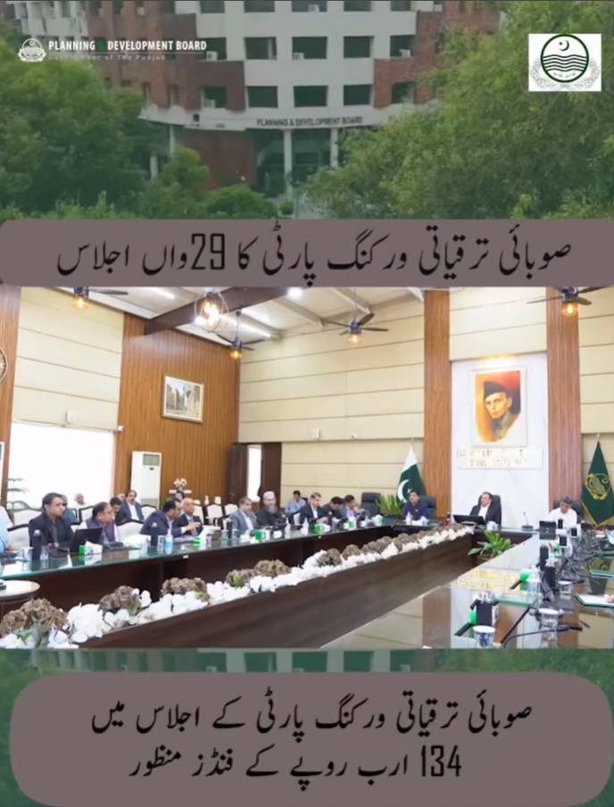 The 29th meeting of the Provincial Development Working Party (PDWP), chaired by Chairman P&D Board Dr. Naeem Rauf, approved 24 development schemes and 6 position papers in the sectors of Higher Education, Governance, and Local Government. ✅ Higher Education CM Initiative for Establishment of New Colleges – Rs. 7,457.49m Establishment/Upgradation of Sub-Campuses of Universities – Rs. 2,000m ✅ Governance & IT (Position Papers) Punjab Archives Digitization (Phase III) eBIZ Portal for Business Facilitation Punjab e-Commerce Initiative CM IT Internship Program Capacity Building of PMRU (I&C Wing, S&GAD) Development of Online Statistical System ✅ Local Govt Punjab Development Program for the improvement of sewerage, drainage, street pavements, and allied works in 23 cities, including Chichawatni, Lodhran, Mian Channu, Kamalia, Tandlianwala, Hasilpur, Mailsi, Kot Addu, Pasrur, Shakargarh, Hazro, Ferozewala, Bhalwal, Narowal, Muridke, Renala Khurd, Kabirwala, Sarai Sidhu, Chak Jhumra, Pattoki, Depalpur, Abdul Hakim, and Ali Pur Chatha Estimated Cost: Rs. 124,603.051m 👥 The meeting was attended by Secretary P&D Board Mr. Rafaqat Ali, Secretary Education Mr. Ghulam Farid, Secretary LG Mr. Shakeel Ahmad, Chief Economist Mr. Masood Anwar, Members P&D, and other senior officers.